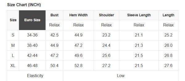 See size chart for approximate measurements.